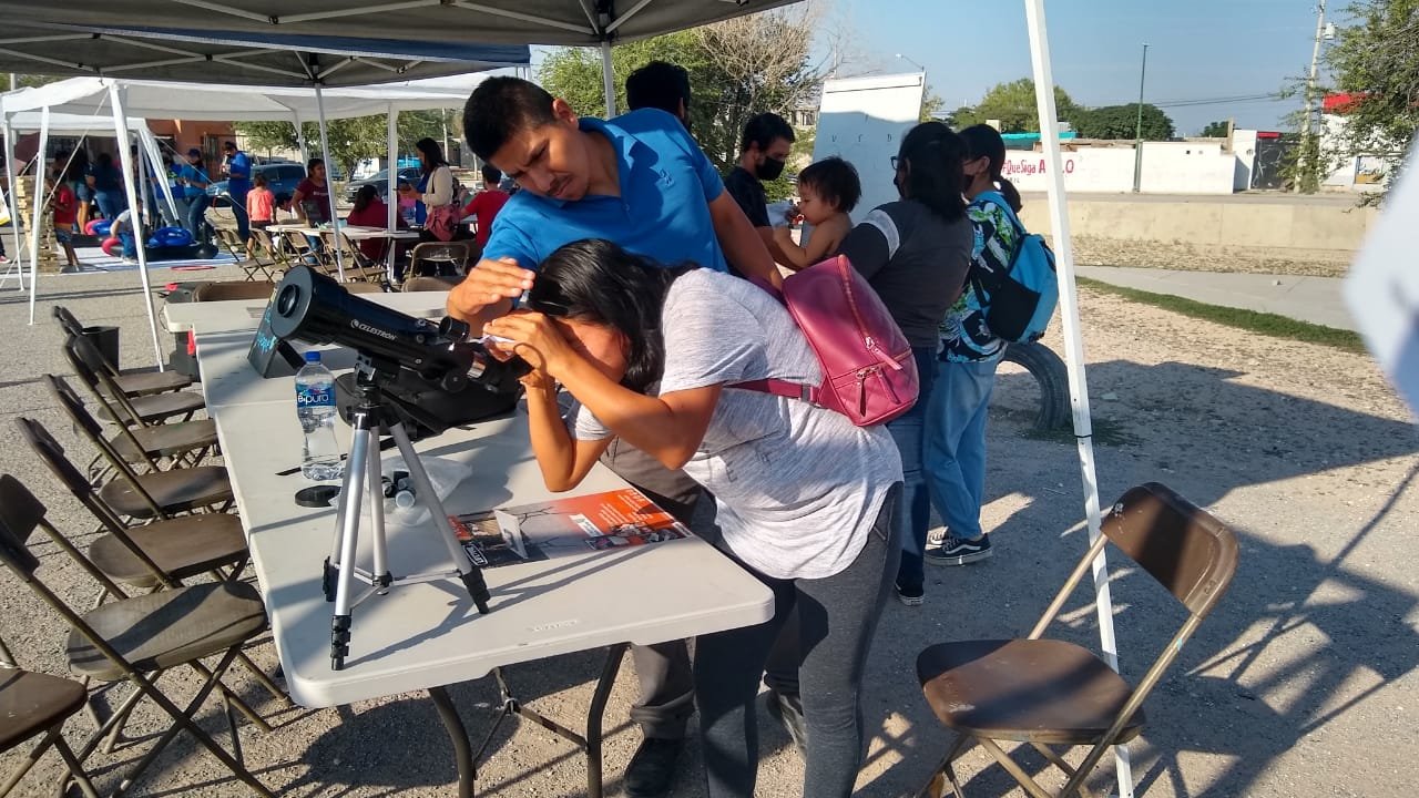 Ya son casi las 8:00. Las carpas de los talleres ya se levantaron y los jóvenes reclaman la cancha de futbol para empezar a jugar. Mientras tanto, al otro lado del parque, donde hay una pantalla inflable, los organizadores de la jornada comunitaria de Comunidades Juárez pasan una pequeña presentación para contarle al público quiénes son y qué hacen. Por un momento se va la luz, y la presentadora les dice a los asistentes que miren a la luna. Se ve enorme, brillante y llena.