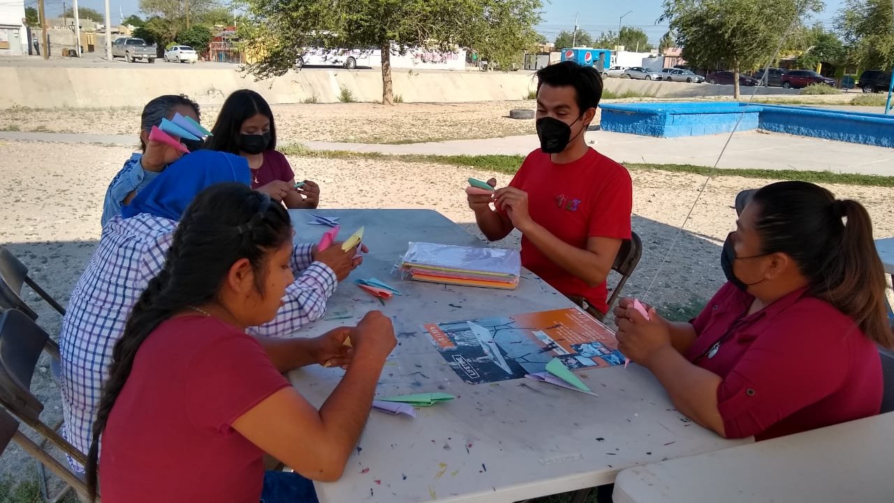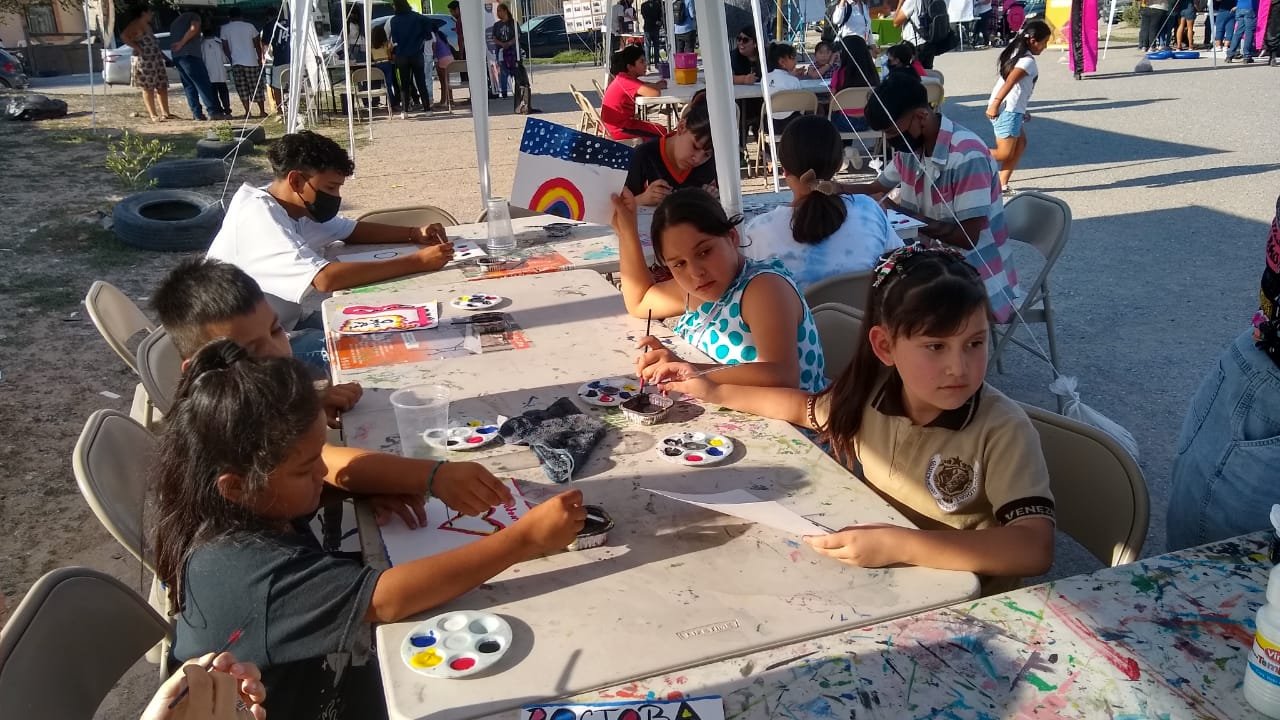 Ciudad Juárez, Chihuahua.- Son las 4:00 de la tarde del viernes 9 de septiembre, los vecinos y las vecinas de Parajes de Oriente miran desde sus ventanas o sus porches a un grupo de personas que instala carpas en el Parque de las Canchas –que se ubica en las calles Desierto de Túnez y Desierto de Qatar Norte–. Algunos de ellos envían a sus niños pequeños a preguntar qué están haciendo y reciben la respuesta: es la jornada comunitaria de Comunidades Juárez.