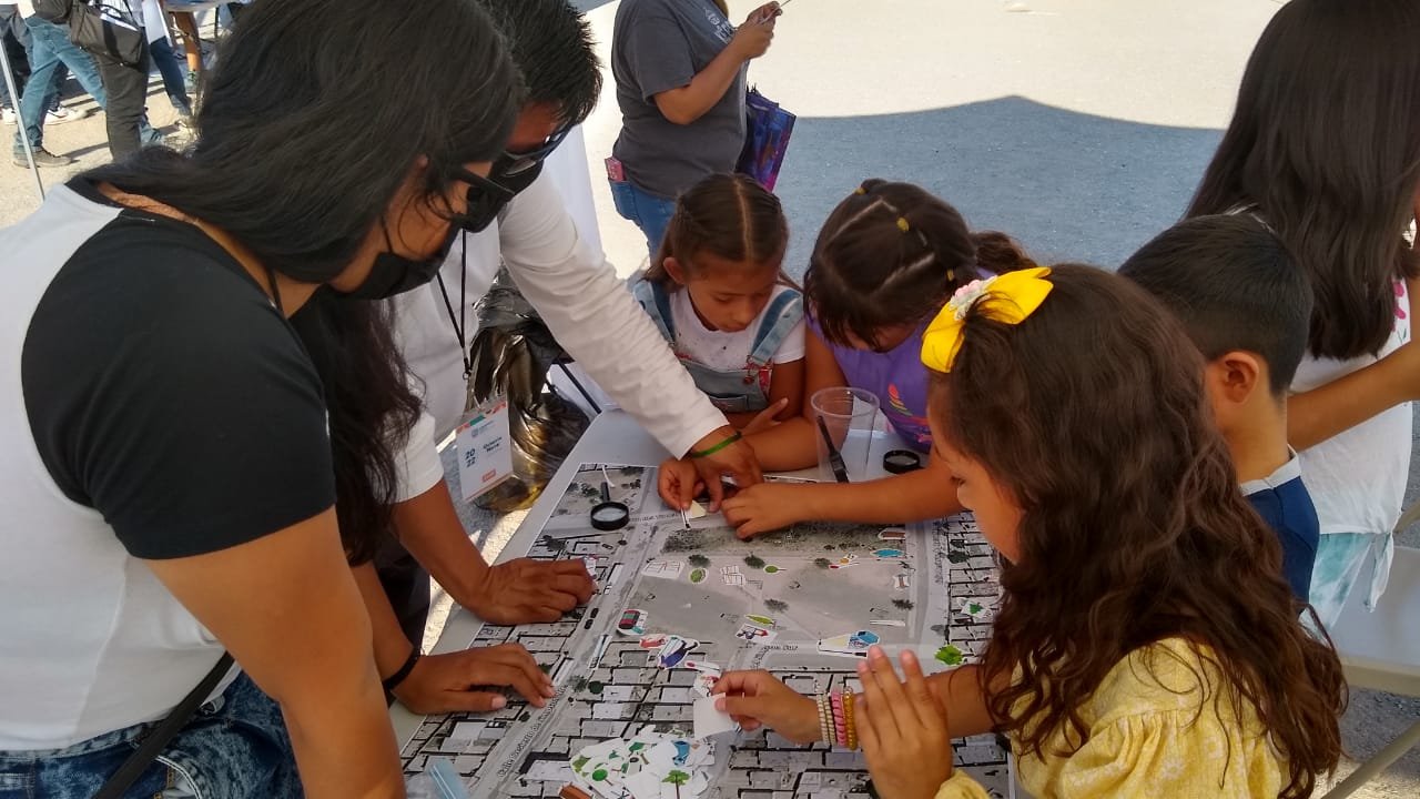 - La Red de Vecinos tiene una actividad donde los niños –por medio de un mapa y stickers– proponen formas de mejorar el parque y las calles