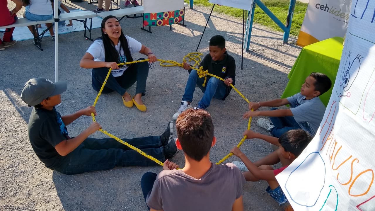 - Cehlíder tiene una serie de juegos que fomentan la coordinación y el trabajo en equipo, como una actividad en la que los participantes deben agarrarse de la cuerda y levantarse al mismo tiempo