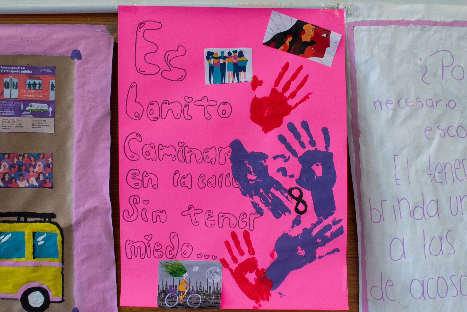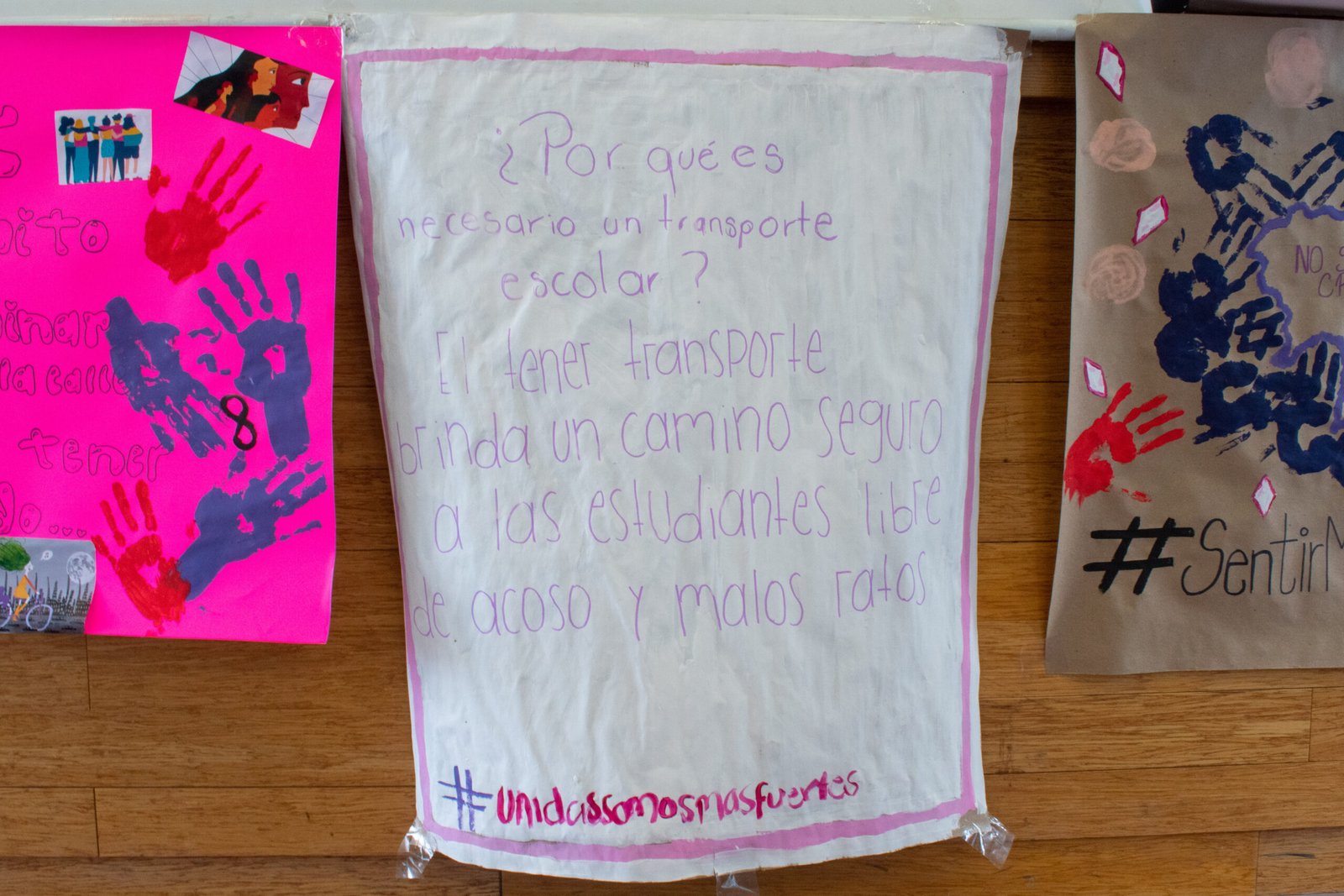Las estudiantes diseñaron diversos hashtags y carteles con mensajes de denuncia y sobre la importancia de tener un transporte escolar como espacio seguro. “Sentir miedo no debería ser una opción”, “tener un transporte brinda un camino seguro a las estudiantes, libre de acoso y malos ratos” y “es bonito caminar en la calle sin tener miedo” figuraban entre los mensajes de los carteles.