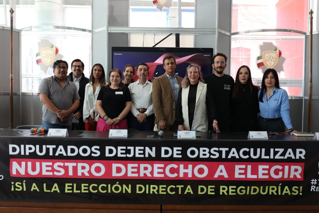 Durante la rueda de prensa, las y los participantes señalaron la falta de voluntad política de los legisladores y pidieron garantizar el derecho ciudadano a elegir de manera individual a sus representantes en los Ayuntamientos.